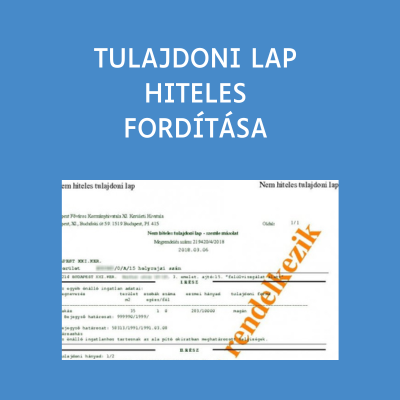 Alább megrendelheted és ki is fizetheted a tulajdoni lapod hiteles fordítását. Fontos, hogy az eredeti, magyar nyelvű okmányról viszonylag jó minőségű szkent vagy fotót mellékelj.